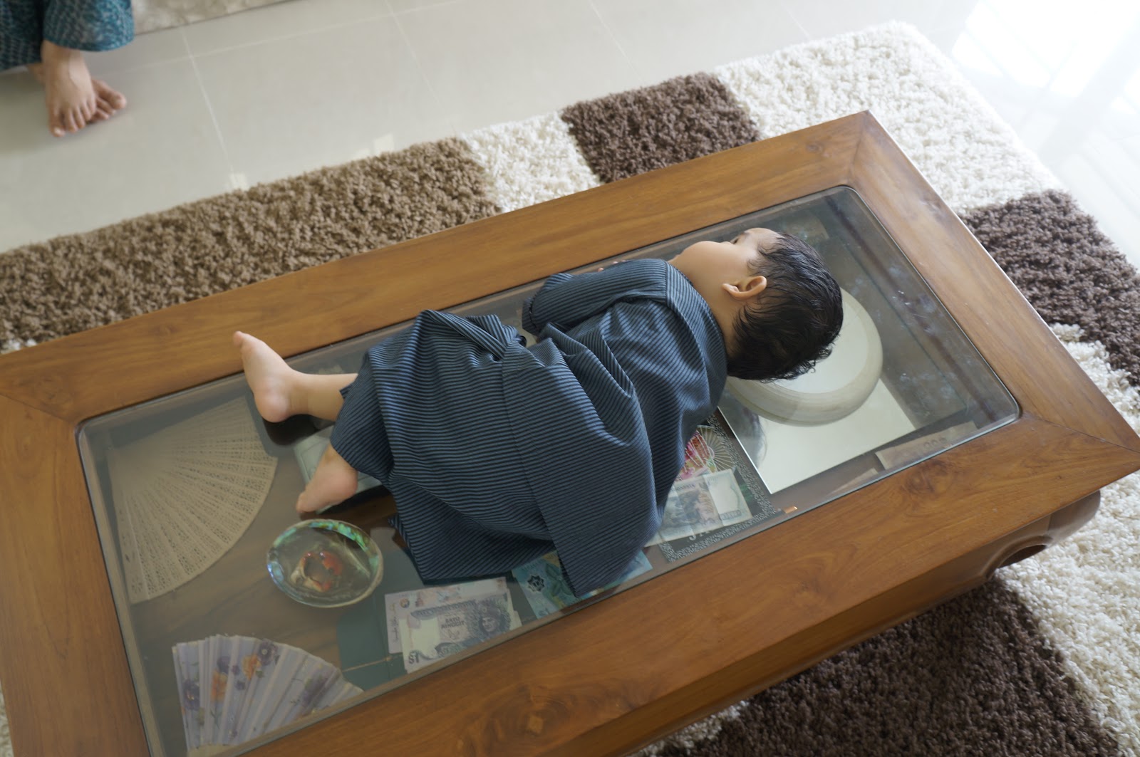 Touch down tepat jam 8am (7am Msia) waktu sana. Kat LCCT aku bawak stroller smpi ke tangga flight. Sampai sana ada miscommunication sket. Pramugari tu ckp stroller dh anta luggage. Ok fine! Anak aku tido, dari pintu flight sampai ke baggage claim aku rase ada la dlm 1.5km berjln. Kalau lenggang mak limah ok bai..Ni mak pikol budak 10kg..Tgn dh kebas je. Muka dah biru. Kalori nasi lemak pon dah negatif aku rase. Damn it!! Dah 3/4 perjalanan aku nmpk ada akak ni tolak stroller. Since die sama flight ng aku, aku suh la adik aku tnya mana dia dpt. Dia ckp die tunggu kat dpn pintu flight tuh. Pastu nmpkla stroller hijau yang xdiclaim. Dang!! Bengong! Ni seme slh stewardess tu. Aku dh hangin. Nak patah blk mmg xlogik sbb jalan sehala je. Xda escalator naik dah. Dalam hati ni penuh 'berzikir'. Kesimpulannya tunggu je dpn pintu flight tuh. Dah la baggage pon lembab! Aku rase akibat letih pangku anak yg tido tuh maka fikiran pon agak kurang rasionalnya. Semua masa berlalu sgt lambat. Nasibla pakai beg striking color. Dari jauh dh bleh nampak kan. Xda la nk terambil beg org.